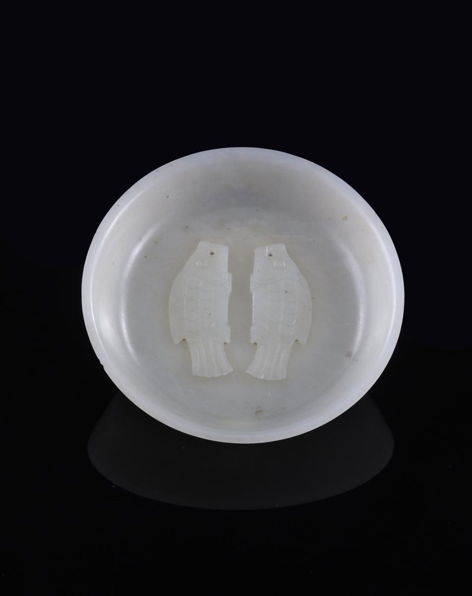 清乾隆 青白玉雙魚碗