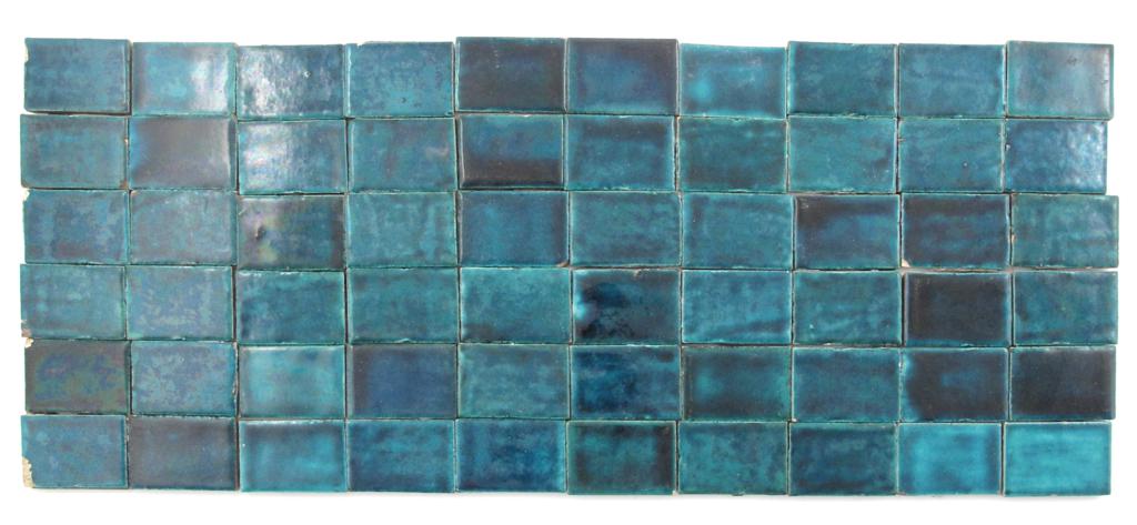 Sixty William De Morgan rectangular spacer tiles, each glazed turquoise impressed marks, 8 x 5cm.