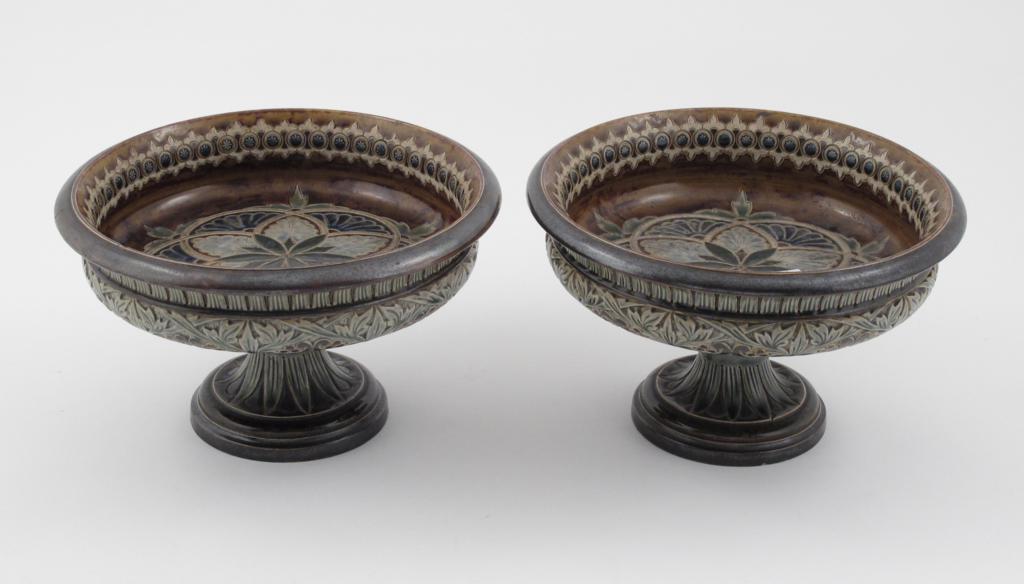 A pair of Doulton Lambeth stoneware tazza by Eliza Simmance