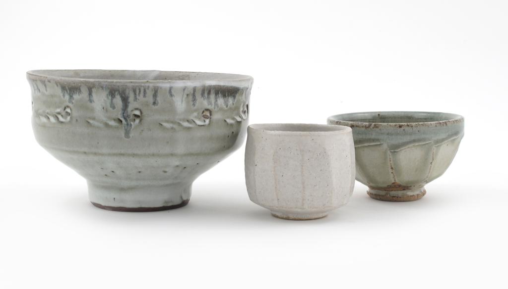 Mike Dodd (born 1943) a stoneware bowl with incised foliate decoration glazed white