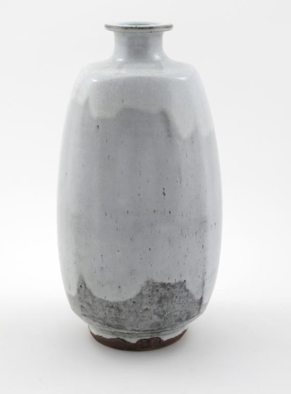 Jim Malone (born 1946) an Ainstable Pottery stoneware vase, shouldered form, covered to the foot in a white glaze impressed seal marks 36cm. high
