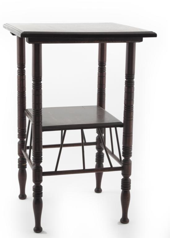 An Aesthetic movement side table, in the manner of E W Godwin, square top, with turned wood legs 66cm. high