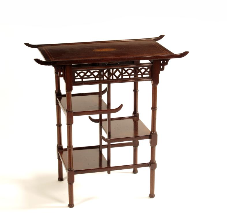 An Aesthetic Movement rosewood side table, with cantilevered shelves and pierced fretwork panels unsigned 67 x 35cm.