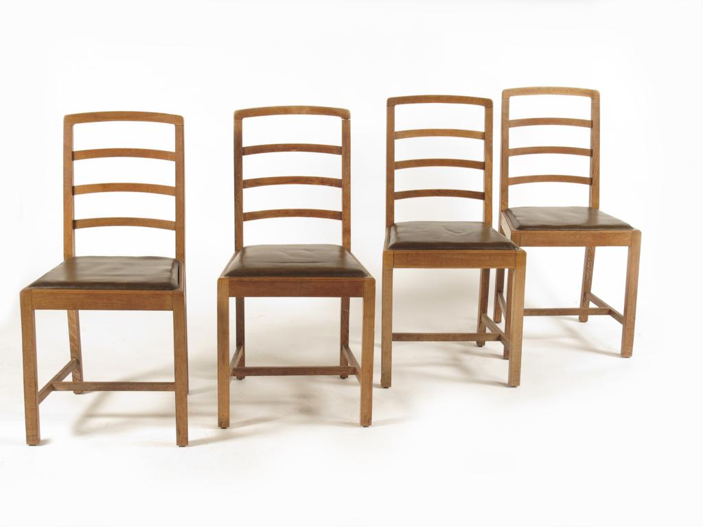 A set of eight Heal's limed oak dining chairs