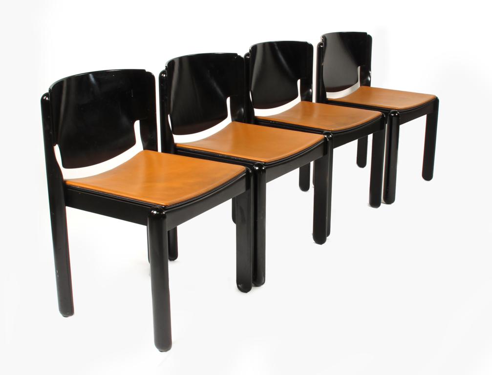 A set of ten Cassina chairs designed by Vico Magistretti applied label 74.5cm. high