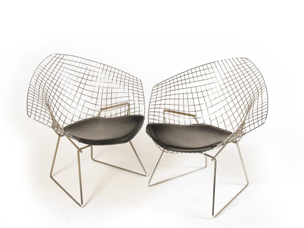 A pair of chromed metal Diamond chairs designed by Harry Bertoia