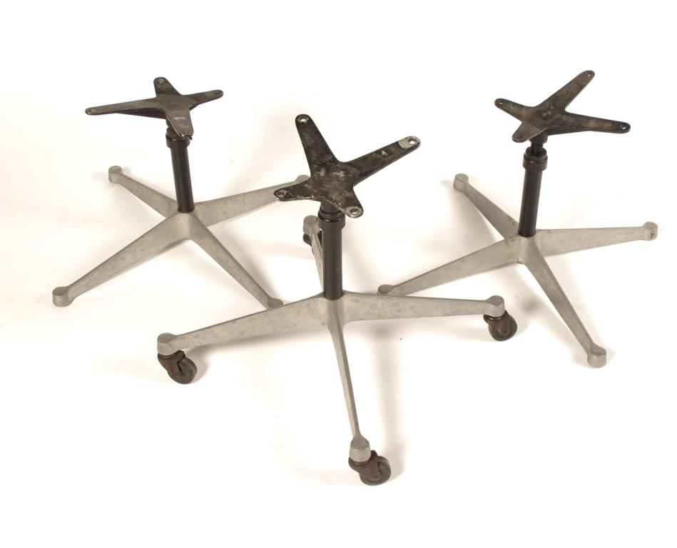 Three burnished steel chair bases, designed by Charles & Ray Eames largest 60cm. wide