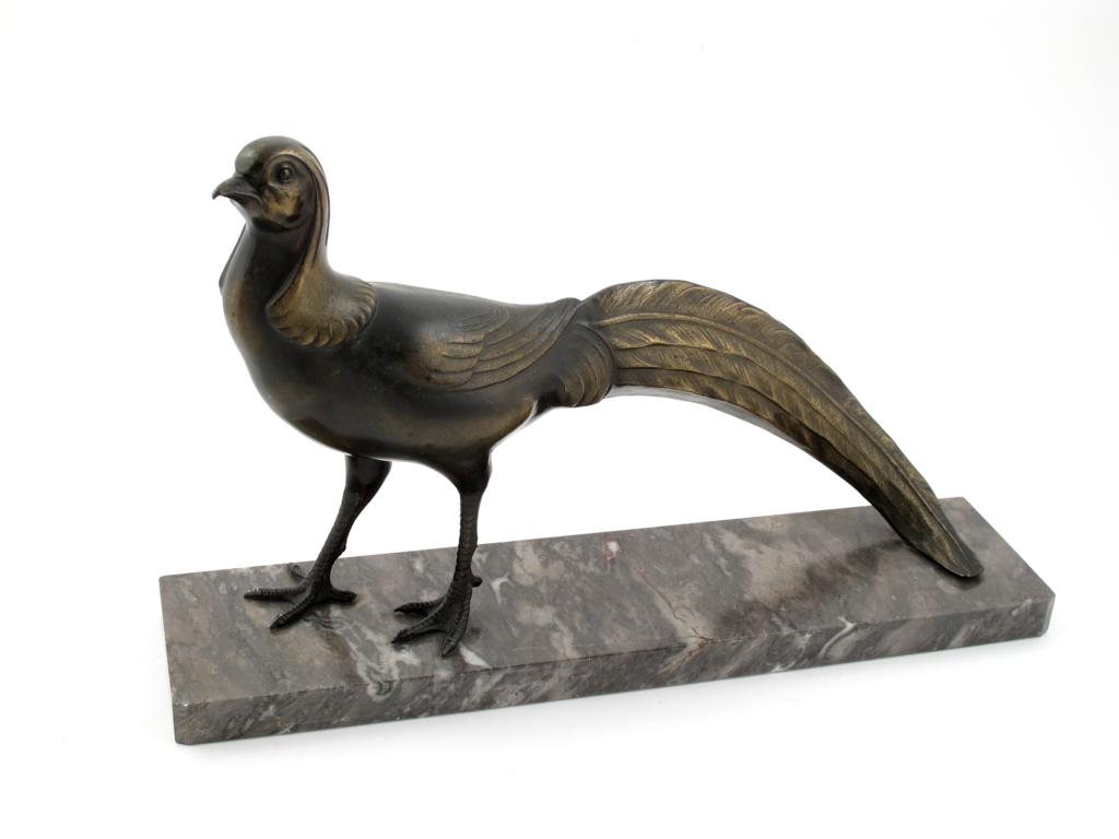 A patinated spelter model of a pheasant