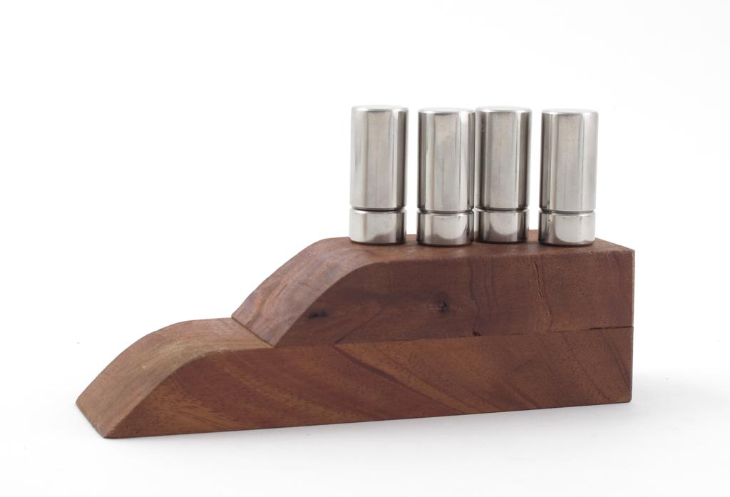 ‡Sir Eduardo Paolozzi RA (1924-2005) a polished steel and teak sculpture signed EP 17cm. wide...