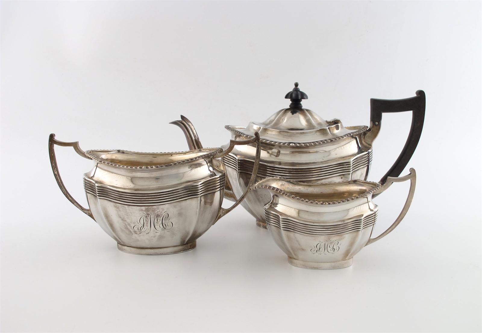 A three-piece silver tea set