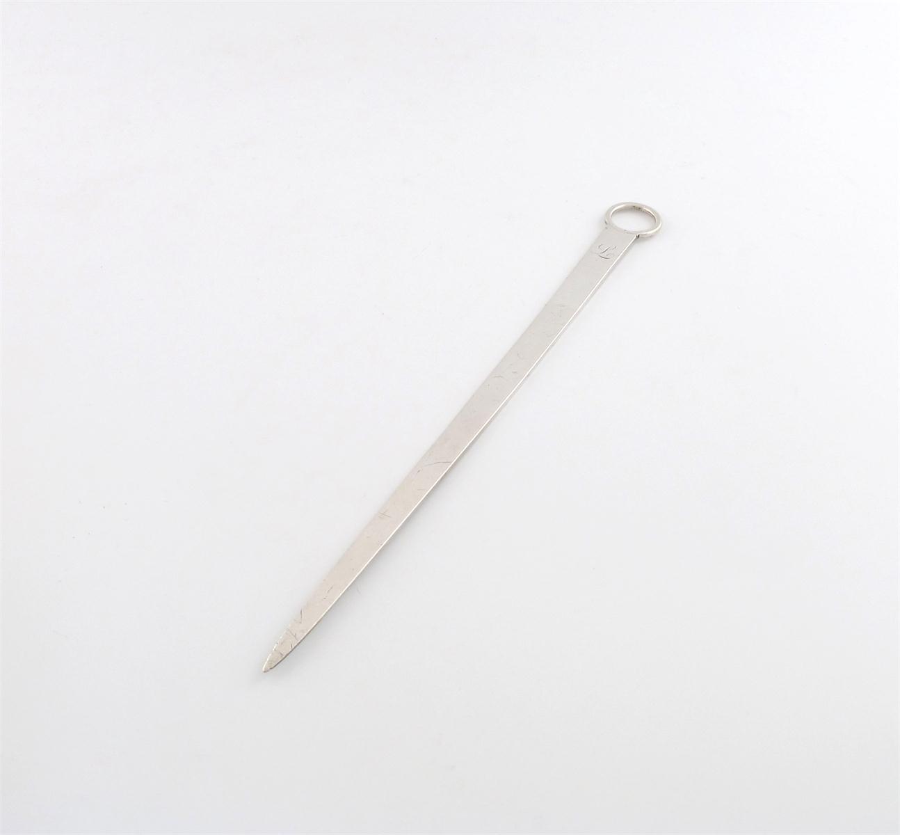 tapering circular form, plain ring handle, with a script initial, length 28cm, approx. weight 2oz.