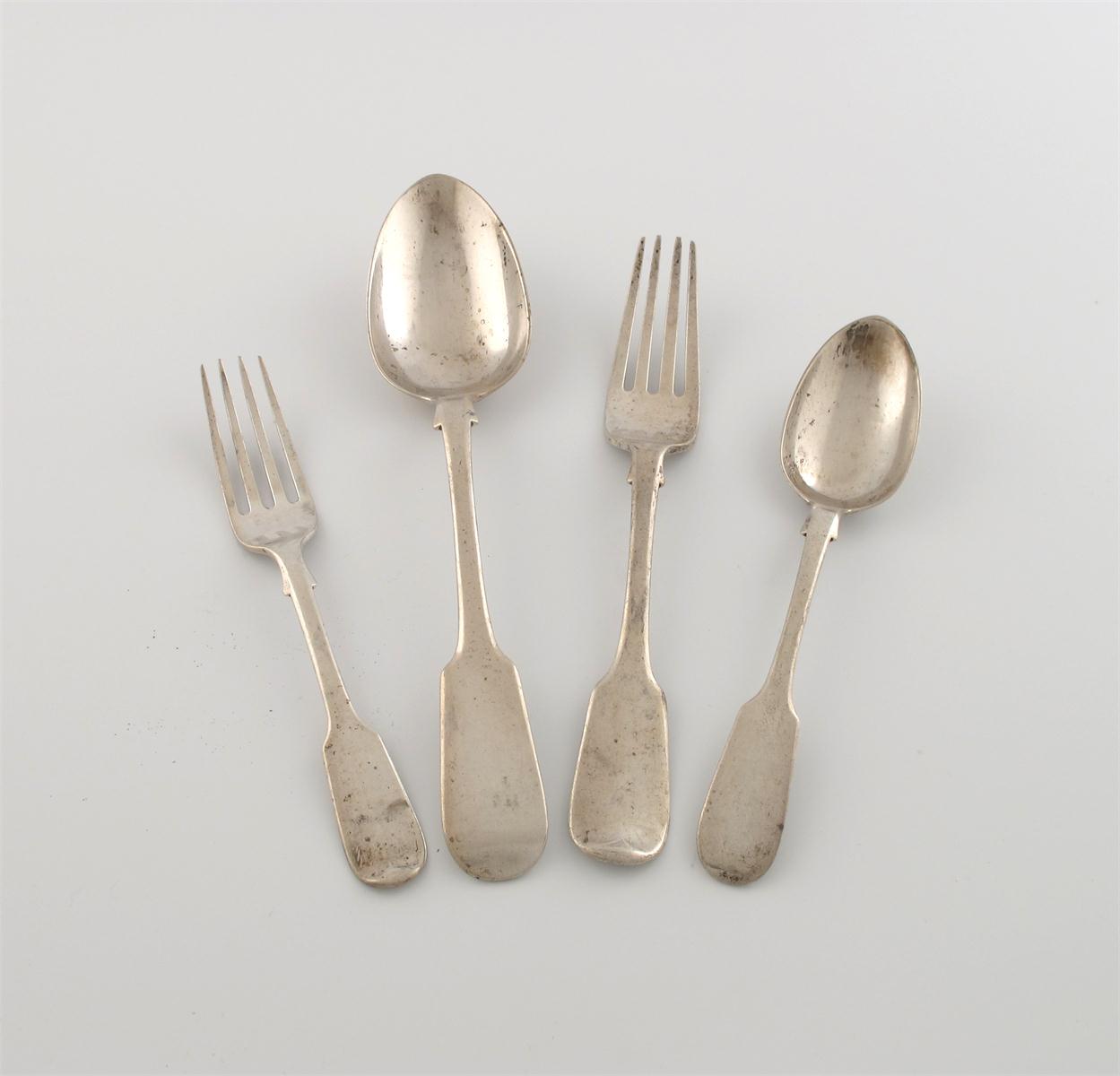 comprising: twelve tablespoons, eleven table forks, twelve dessert forks, and nine dessert spoons, approx. weight 78oz. (qty)