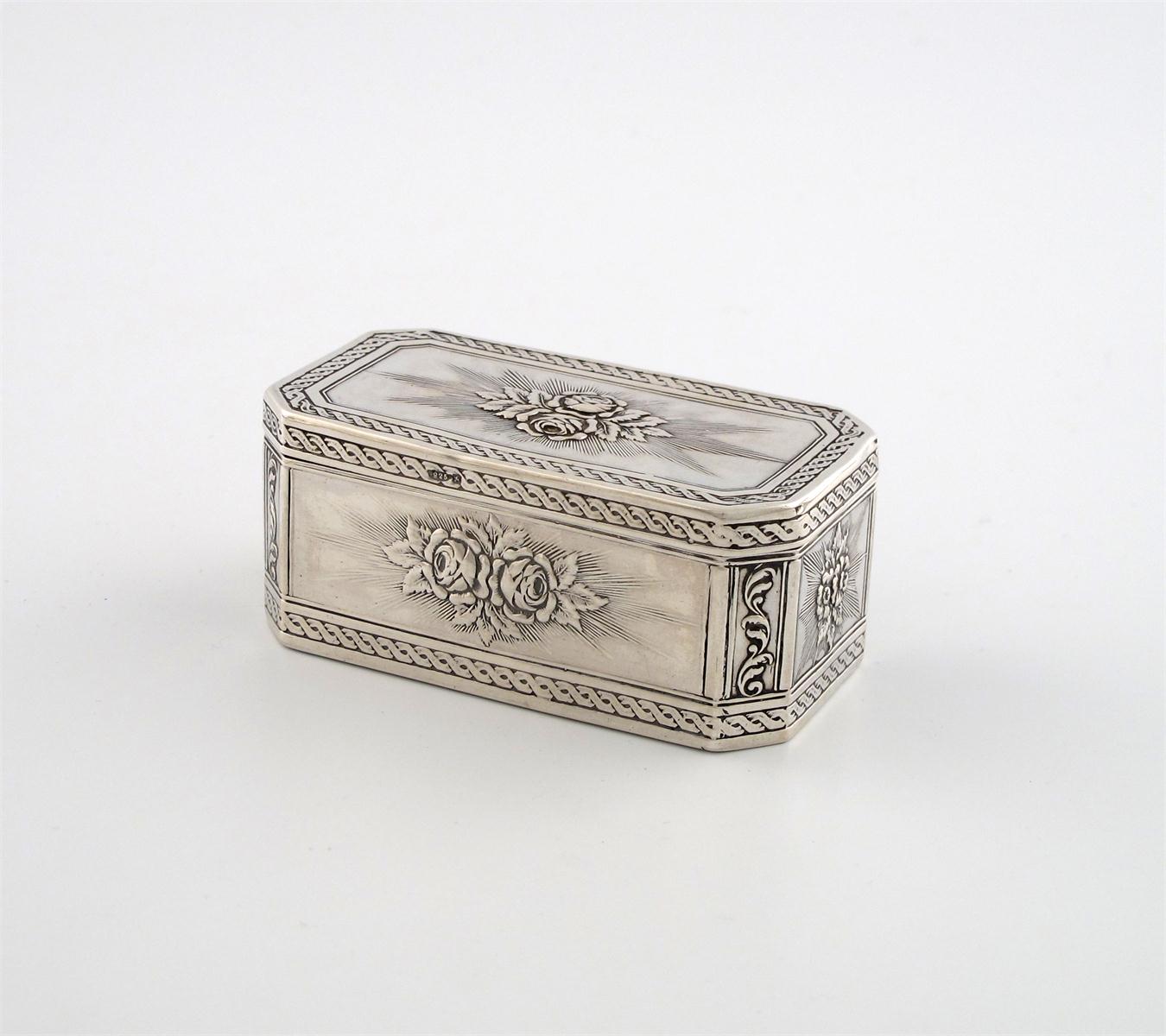 rectangular form, canted corners, foliate decoration, intertwined borders, length 7.8cm, approx. weight 3oz.