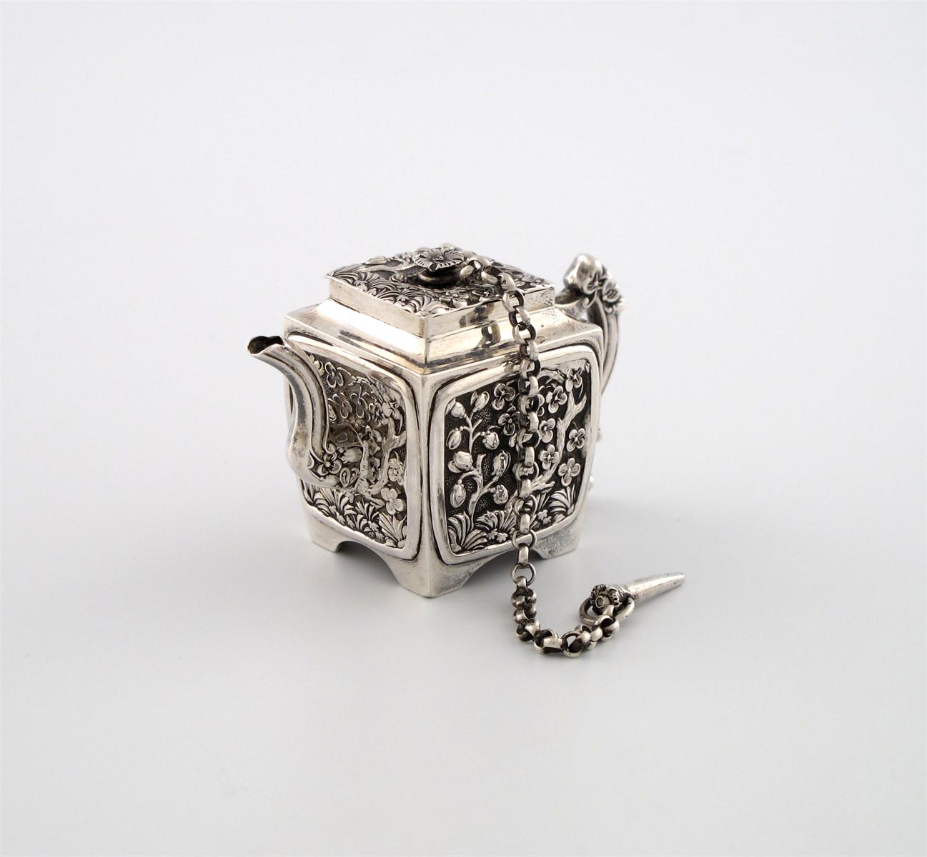 An early-Victorian miniature silver Chinoiserie teapot