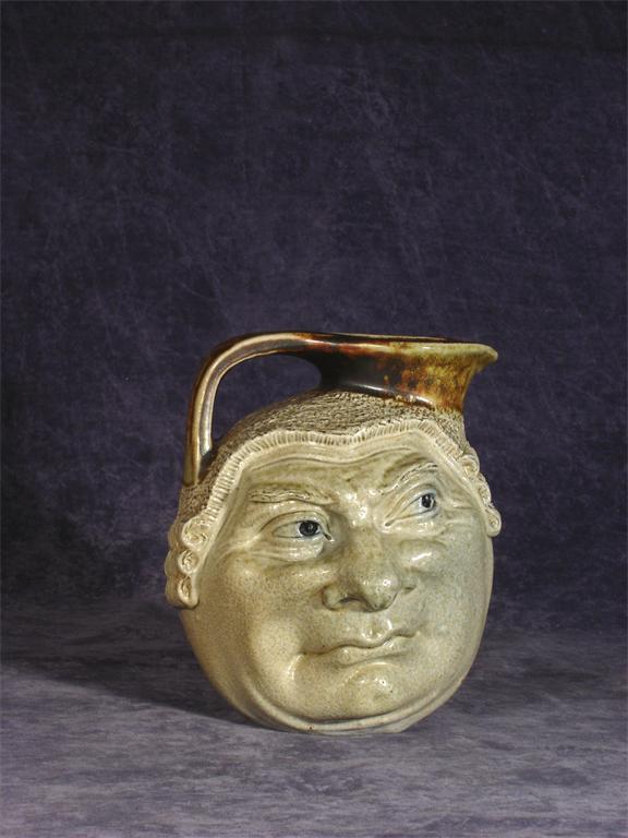 A Martin Brothers stoneware Barrister face jug modelled in relief to both sides