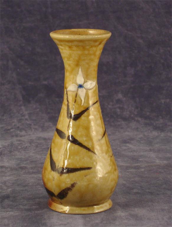 A Martin Brothers stoneware vase painted with simple, stylised flowers in shades of white and blue, on brown stems incised Martin London 15cm. high