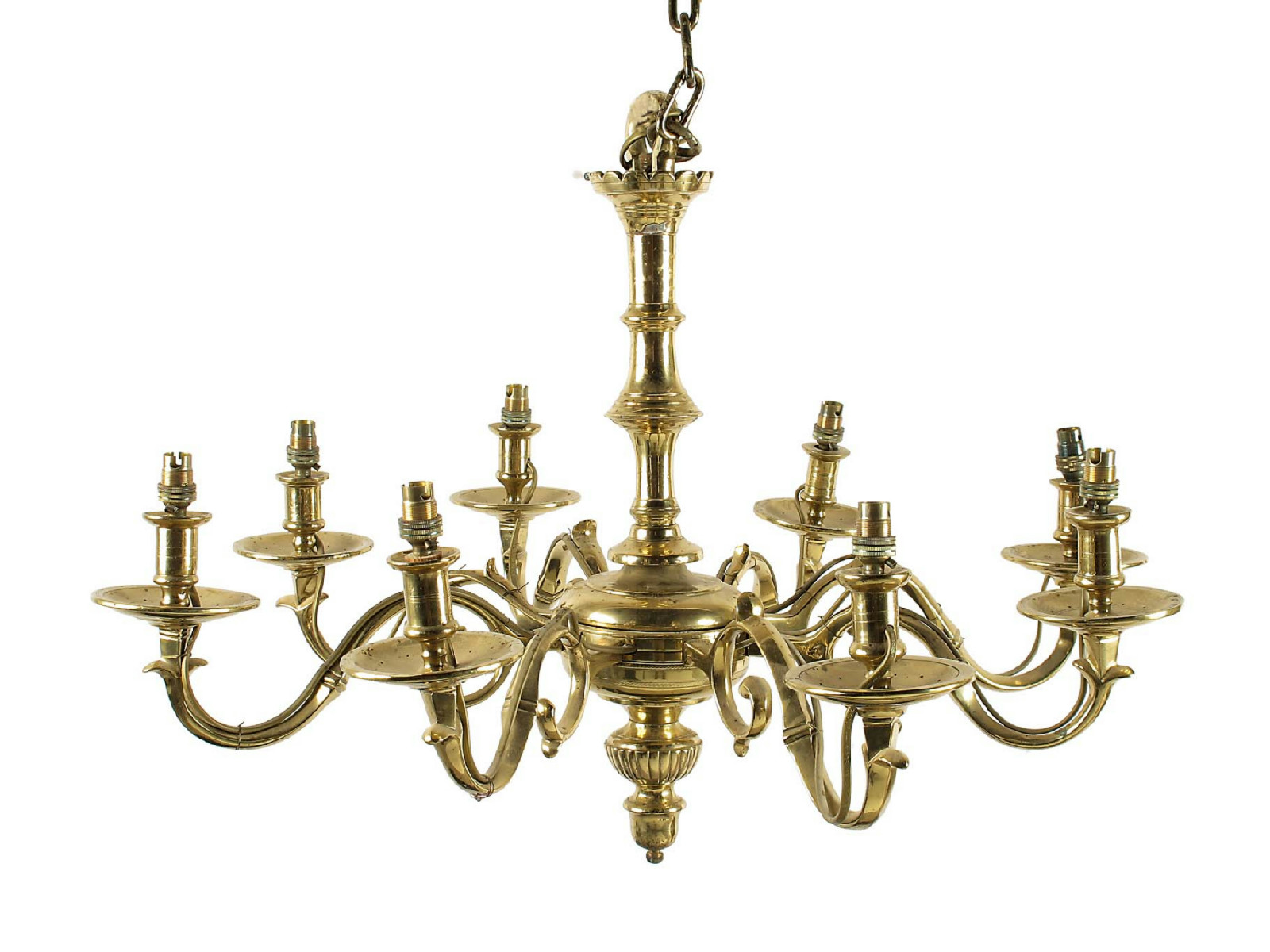 A brass eight branch chandelier in 18th century Dutch style