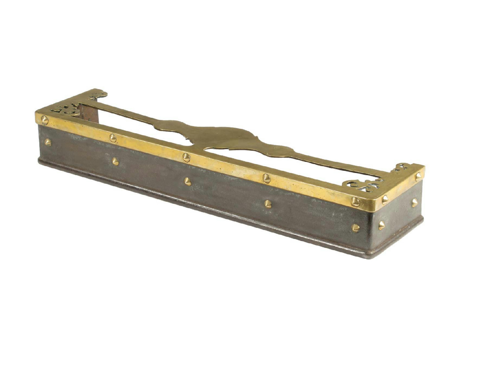 A Victorian brass and iron fender, with a pierced top, 6in (15.3cm) high, 43½in (110.3cm) wide, 10¾in (27.2cm) deep.