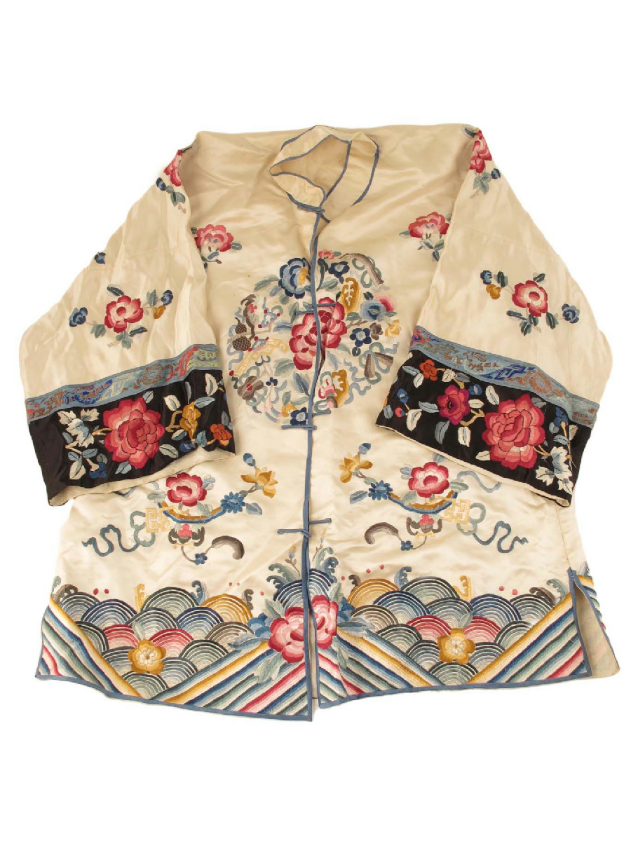 A 1920's Chinese silk jacket, embroidered with flowers.