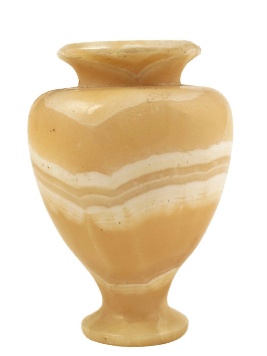 An Egyptian turned alabaster vase, 8¼in (20.6cm) high, 5¾in (14.6cm) diameter.