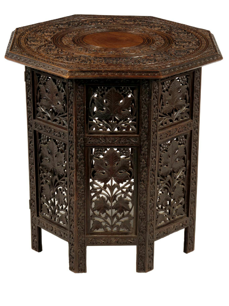 A late 19th century Anglo-Indian carved hardwood octagonal occasional table