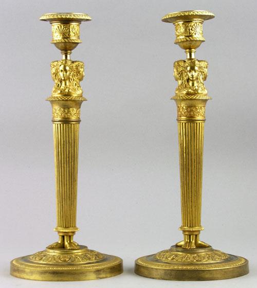 A pair of 19th century French gilt brass candlesticks