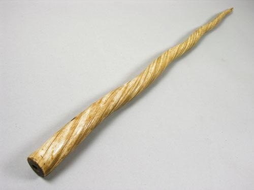 A Narwhal tusk, of tapering form, having a pierced hole either side 3.5in from base, the tip chipped, 36.75in (93.3cm) l.