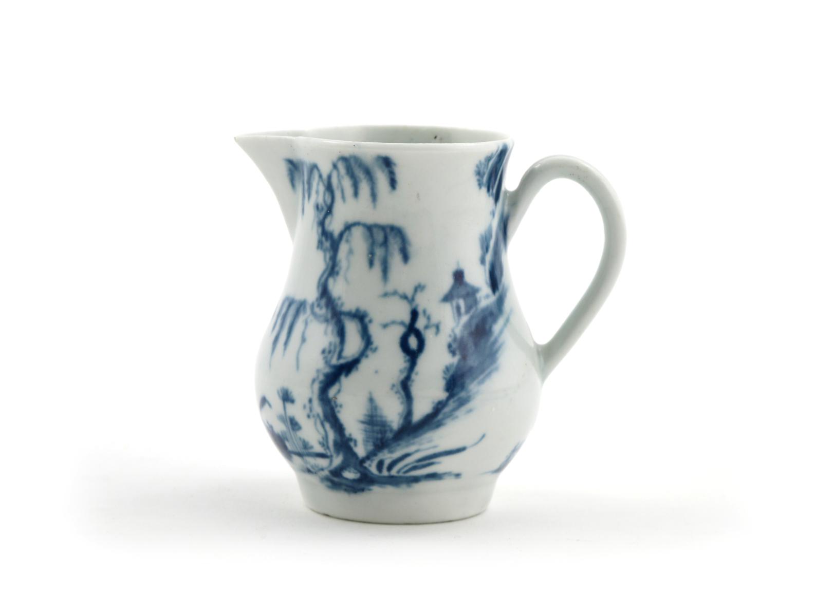A good Worcester blue and white milk jug c.1760, painted with the Landslip pattern, workman's mark to the base, 7.5cm.