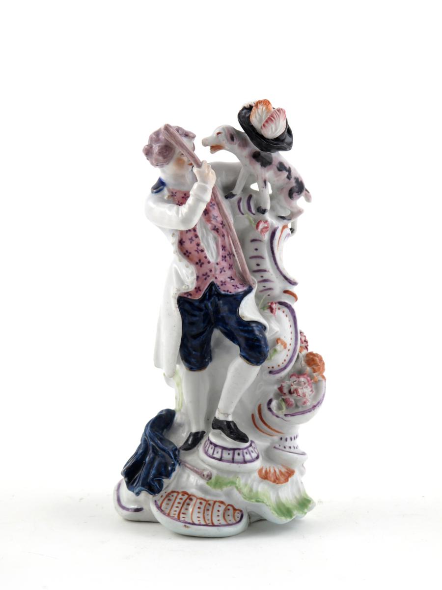 A Vauxhall figure of a man and dog c.1760