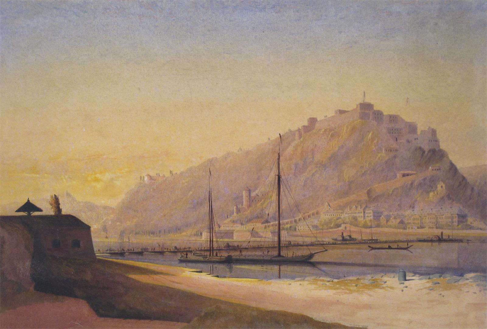 English School 19th Century A view of a castle on the Rhine Watercolour and bodycolour 24 x 35cm;...