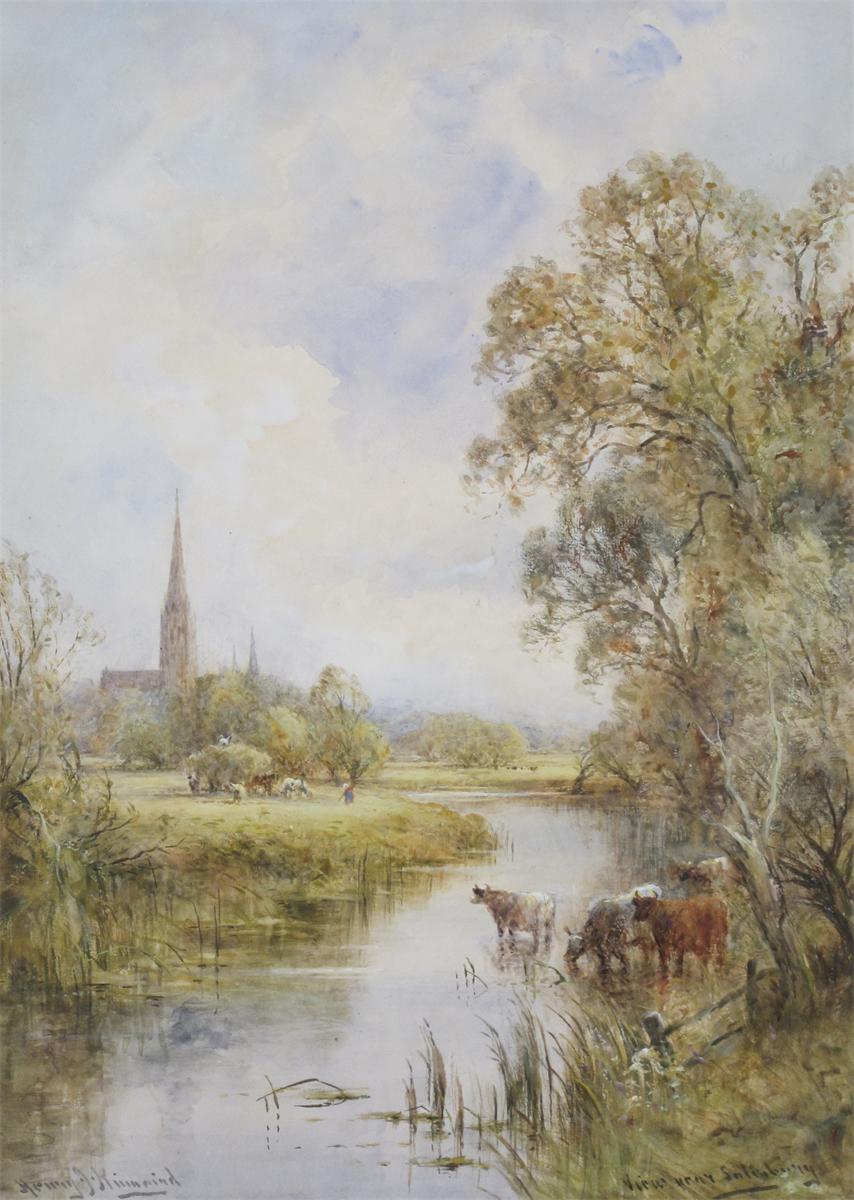 Henry John Kinnaird (fl. 1880-1920) View near Salisbury Signed and titled Watercolour 49 x...