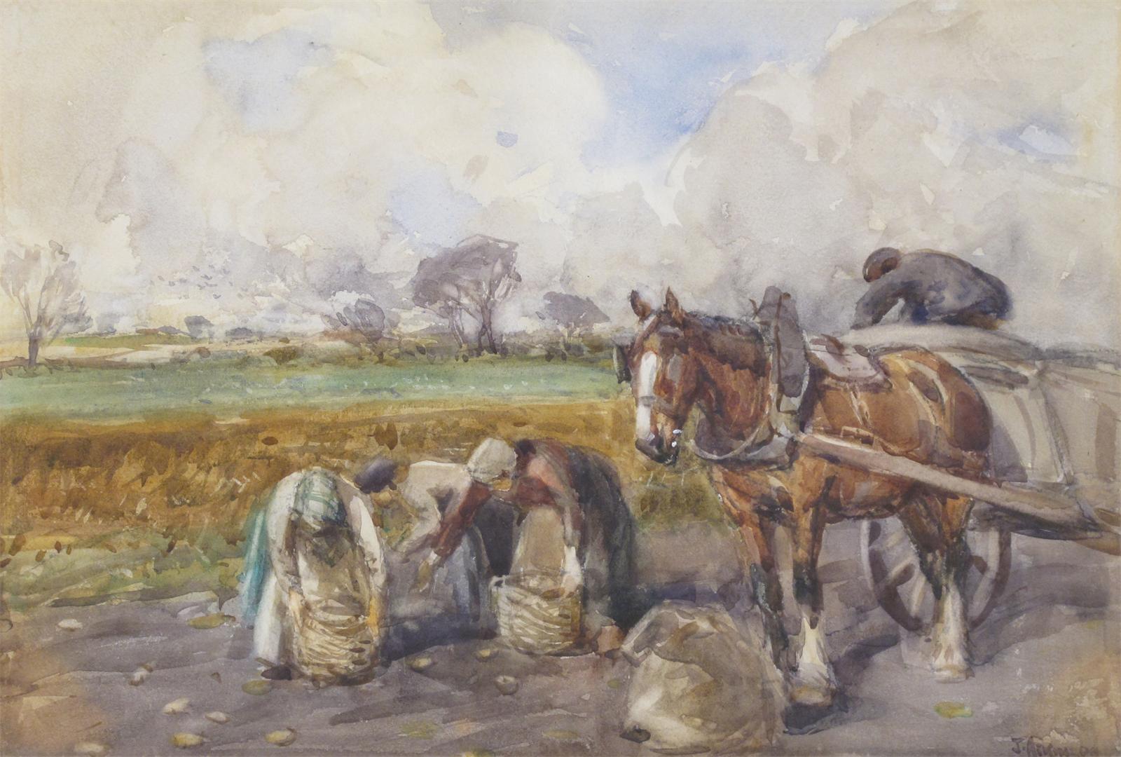John Atkinson (1863-1924) Potato pickers Signed Watercolour 24 x 35cm; 9½ x 13¾in