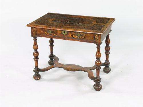 A William & Mary walnut and marquetry inlaid side table