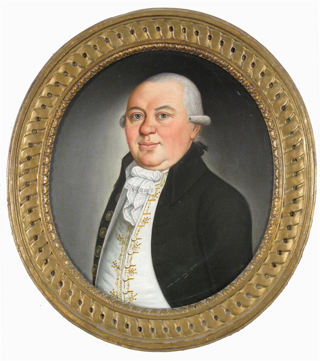 Portrait of a gentleman, head and shoulders, wearing a blue coat