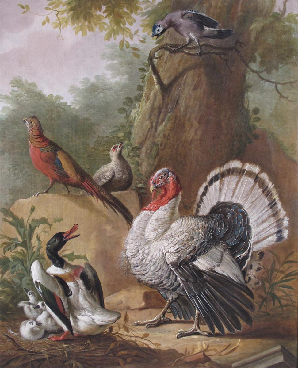 Attributed to Louis Leonart Hubner (d. 1769) A duck protecting its young from a turkey