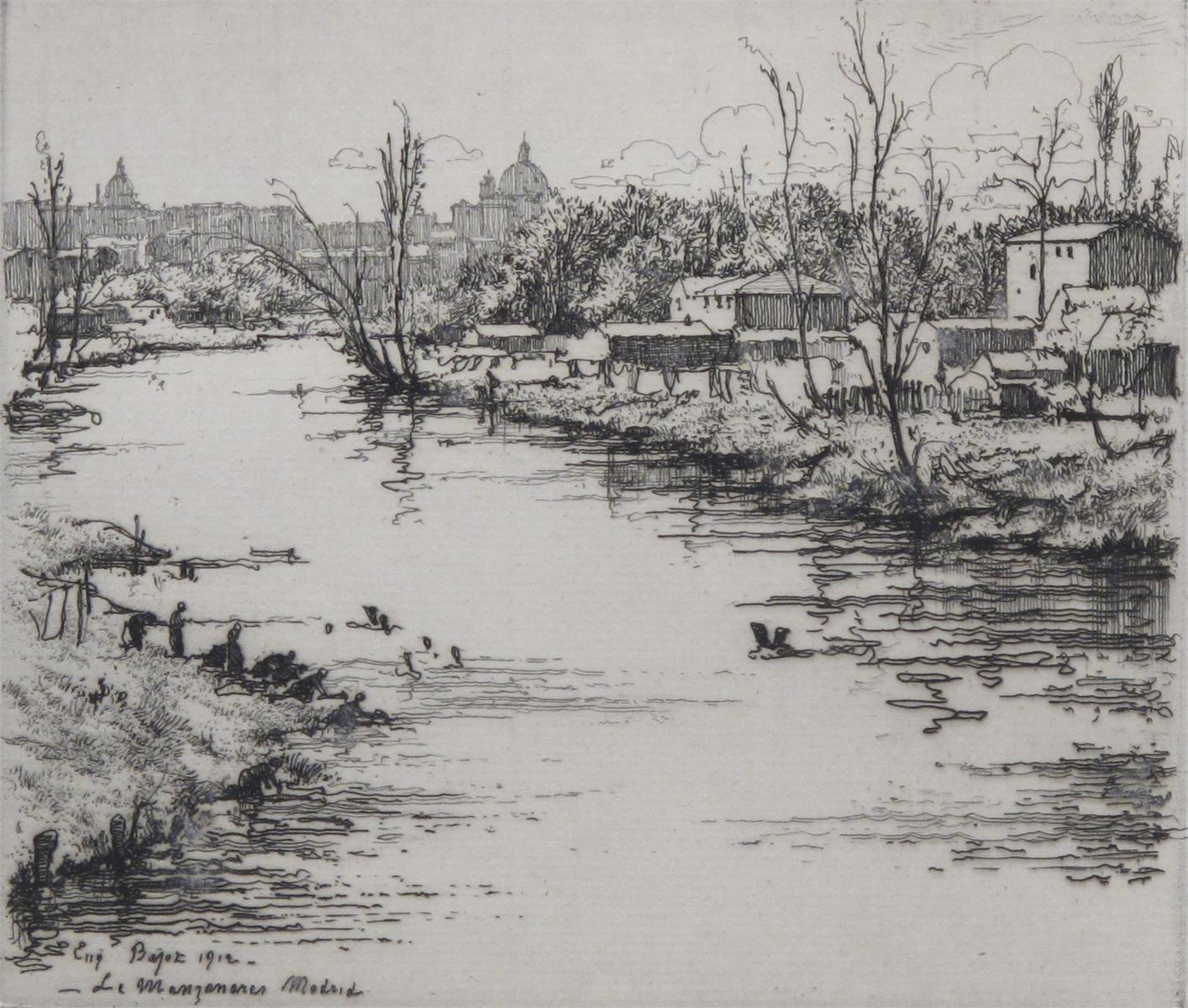 With 3 further unframed etchings inc one by Aubrey Lumsden (4)