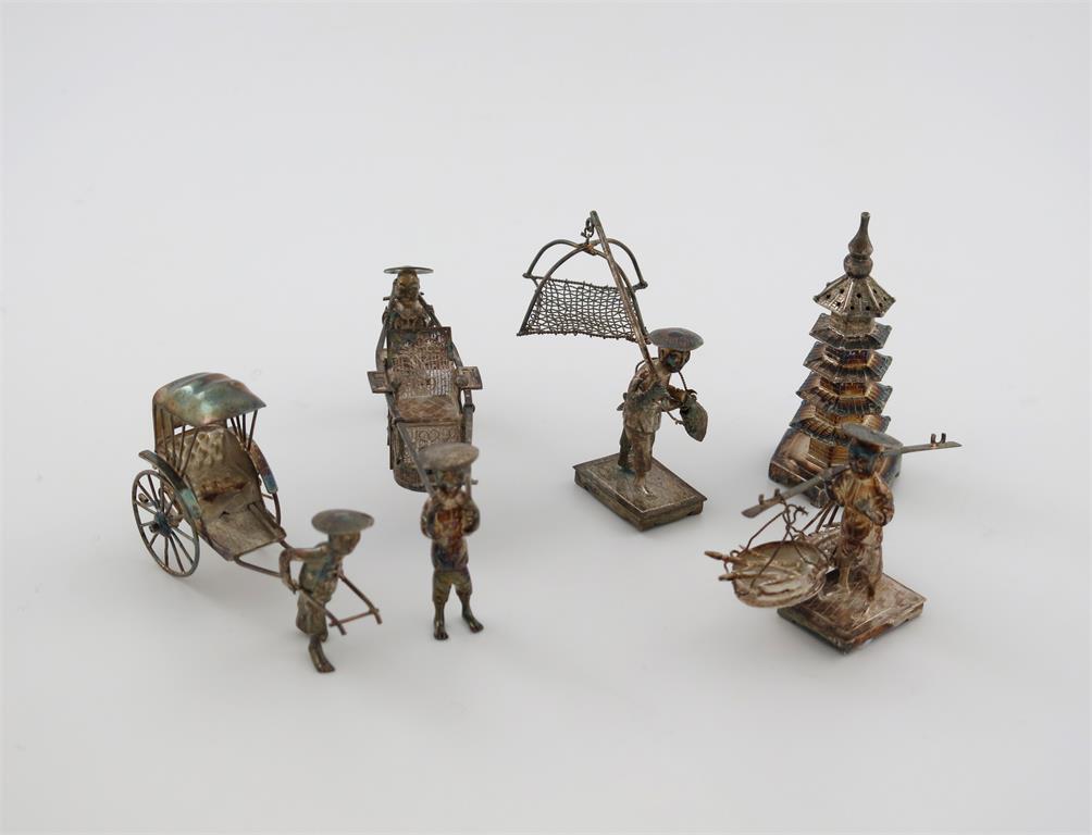 A small collection of five Chinese silver miniatures