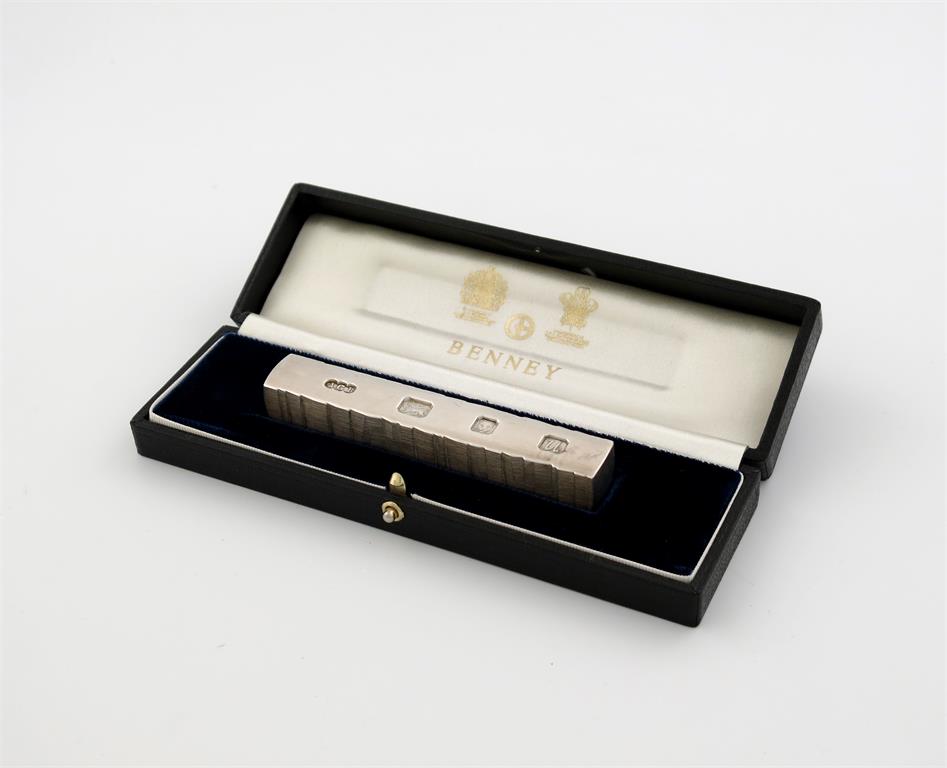 ingot form with textured decoration, in the original fitted case, approx. weight 7.8oz.