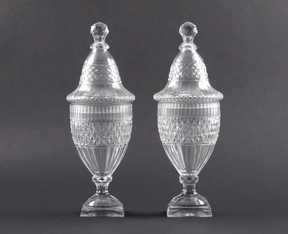 A pair of cut glass sweetmeat jars and covers c.1810-20