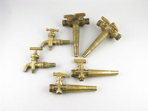 Two brass double beer taps, another two single beer taps, one stamped 'Gaskell & Chambers' and 'Victory' and two other brass taps. (6)