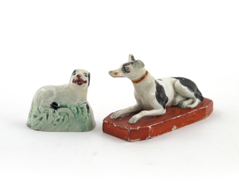 Two pearlware models of dogs early 19th century