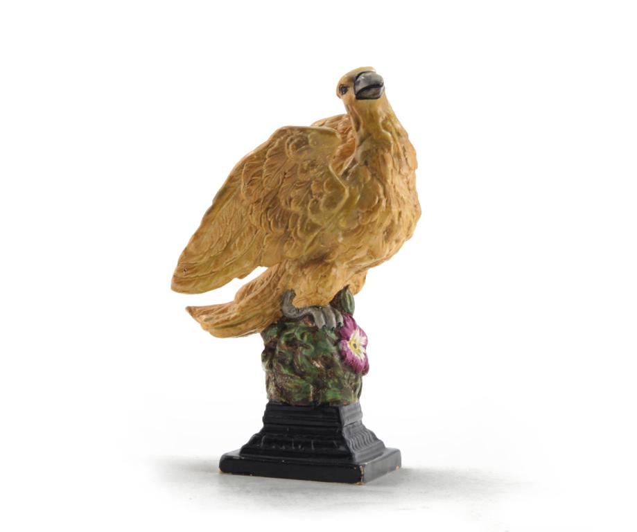 A Staffordshire pearlware model of an eagle early 19th century, standing on a flowered stump with wings unfurling, its head arched back, some good restoration, 20cm.