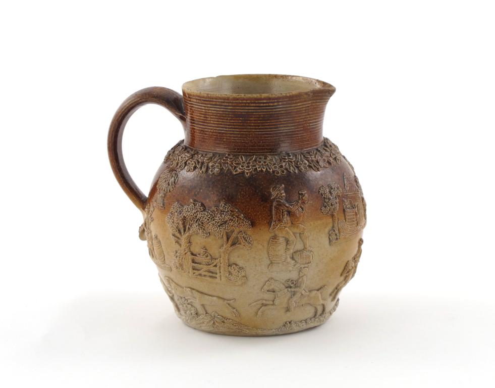 A rare Mortlake (Kishere) brown stoneware hunting jug early 19th century