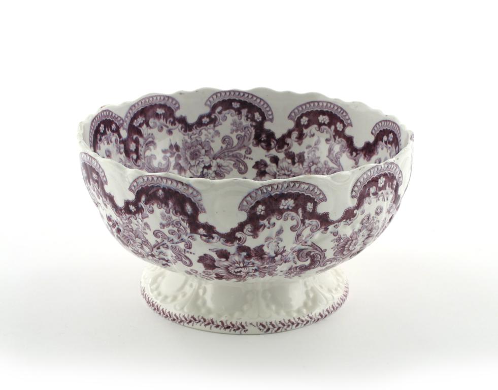 A good Cambrian pottery footed bowl c.1830-40, printed in purple with the Swiss Villa pattern, moulded to the exterior, 22.5cm dia.