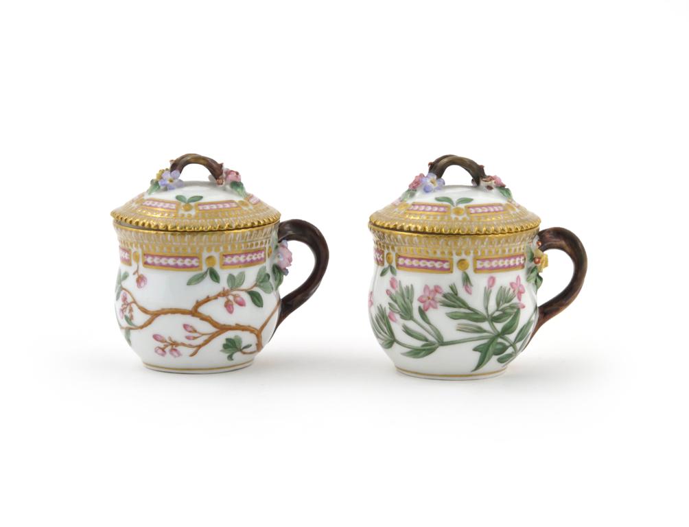 A pair of Royal Copenhagen Flora Danica mustard pots and covers 19th century