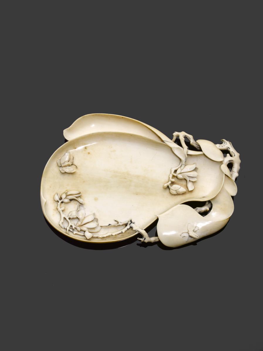 λ A fine Chinese Imperial carved ivory brush washer Qianlong 1736-95