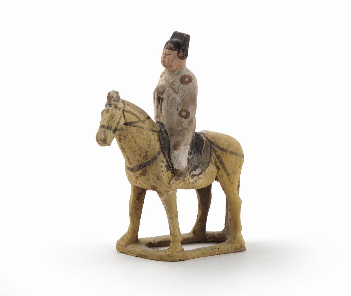 A small Chinese pottery model of a horse and rider Tang dynasty 618BC - 906AD
