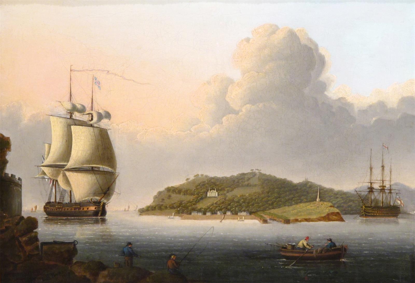 C. S. Bynon (c.1827) Frigate entering Plymouth Sound Signed and dated 1827 Oil on canvas 25.5 x...