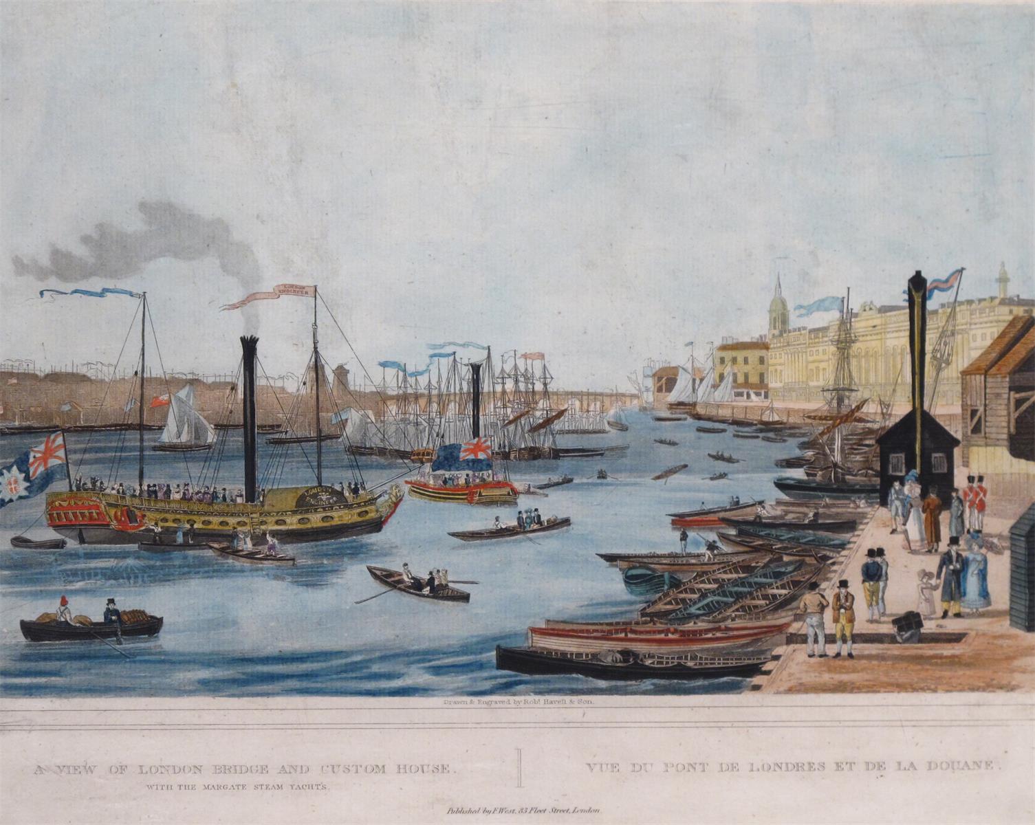 With an unframed print by Robert Havell & Son of London Bridge and the Custom house (2)