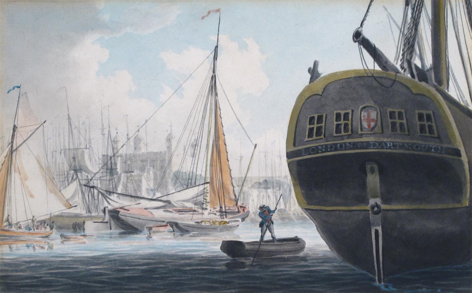 Robert Cleveley (1747-1809) The ship London of Dartmouth in the Thames near the Tower of London...